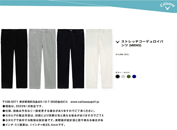 キャロウェイ ゴルフ ストレッチコーデュロイパンツ ゴルフ ウェア 「Callaway Golf C25226108」 2025年秋冬モデル日本正規品
