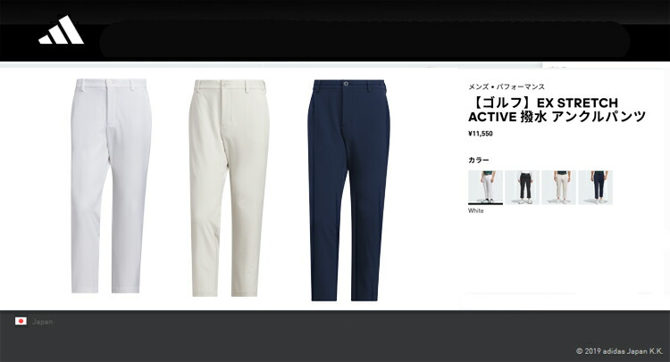 アディダスゴルフ EX STRETCH ACTIVE 撥水 アンクルパンツ メンズ ゴルフ ウェア 「ADIDAS GOLF JVU94」 2025年秋冬モデル