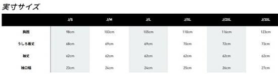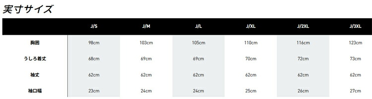 | 実寸サイズ(cm) | M:胸囲103cm、後ろ着丈69cm、袖丈62cm、袖丈幅24cm L:胸囲105cm、後ろ着丈69cm、袖丈62cm、袖丈幅24cm XL:胸囲110cm、後ろ着丈70cm、袖丈62cm、袖丈幅25cm |