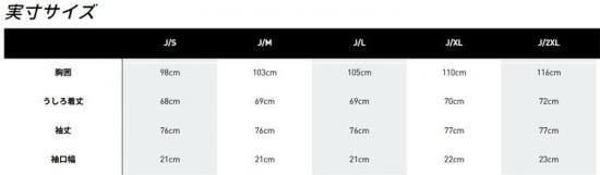 | 実寸サイズ(cm) | M:胸囲103cm、後ろ着丈69cm、袖丈76cm、袖丈幅21cm L:胸囲105cm、後ろ着丈69cm、袖丈76cm、袖丈幅21cm XL:胸囲110cm、後ろ着丈70cm、袖丈77cm、袖丈幅22cm |