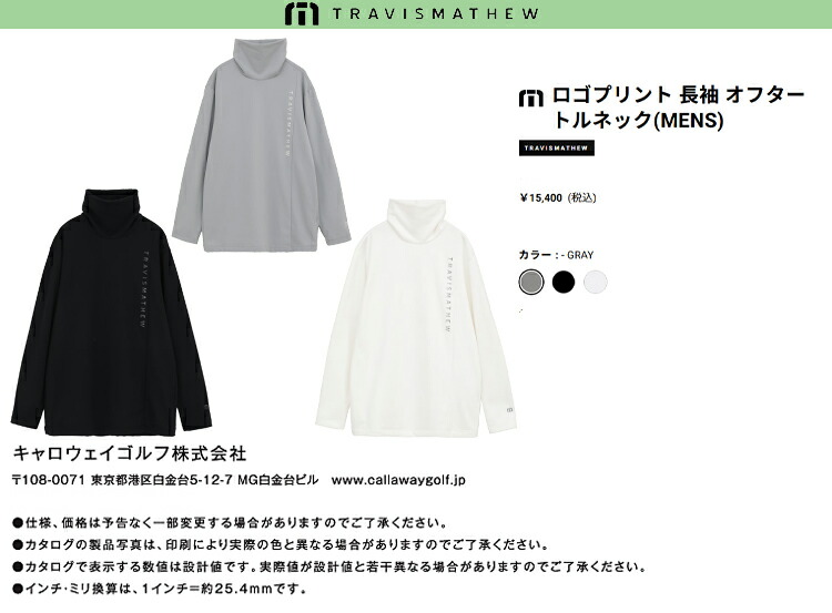 トラヴィスマシュー キャロウェイ ゴルフ ロゴプリント 長袖 オフタートルネック(MENS) メンズ ゴルフ アパレル 「TRAVISMATHEW 7AM047」