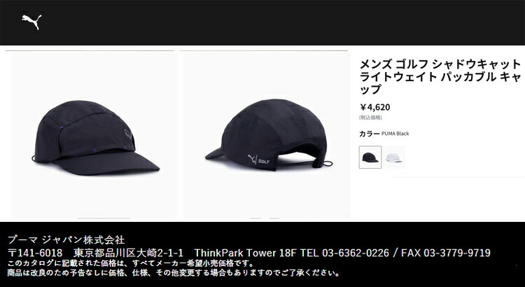 ■PUMA25FW メンズ ゴルフ シャドウキャット ライトウェイト パッカブル キャップ