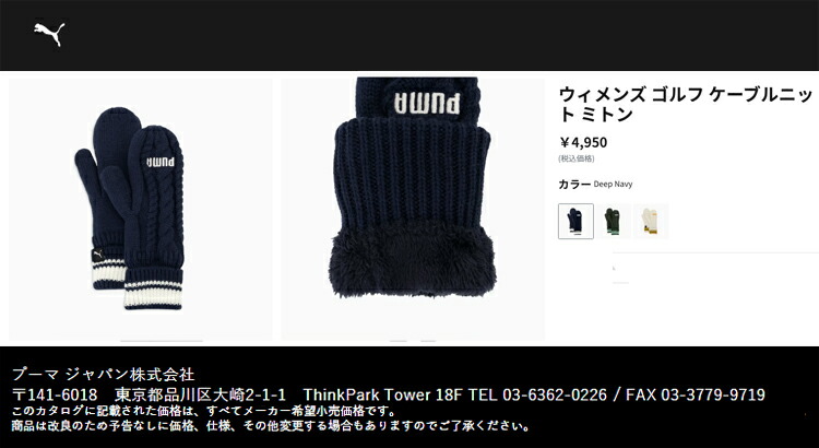 ■PUMA25FW ウィメンズ ゴルフ ケーブルニット ミトン