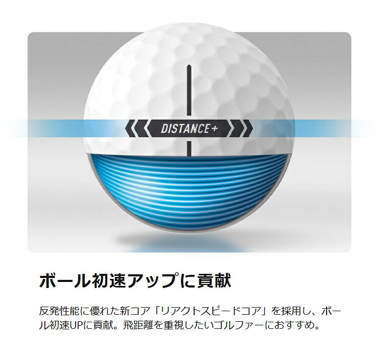 反発性能に優れた新コア「リアクトスピードコア」を採用し、ボール初速UPに貢献。飛距離を重視したいゴルファーにおすすめ。