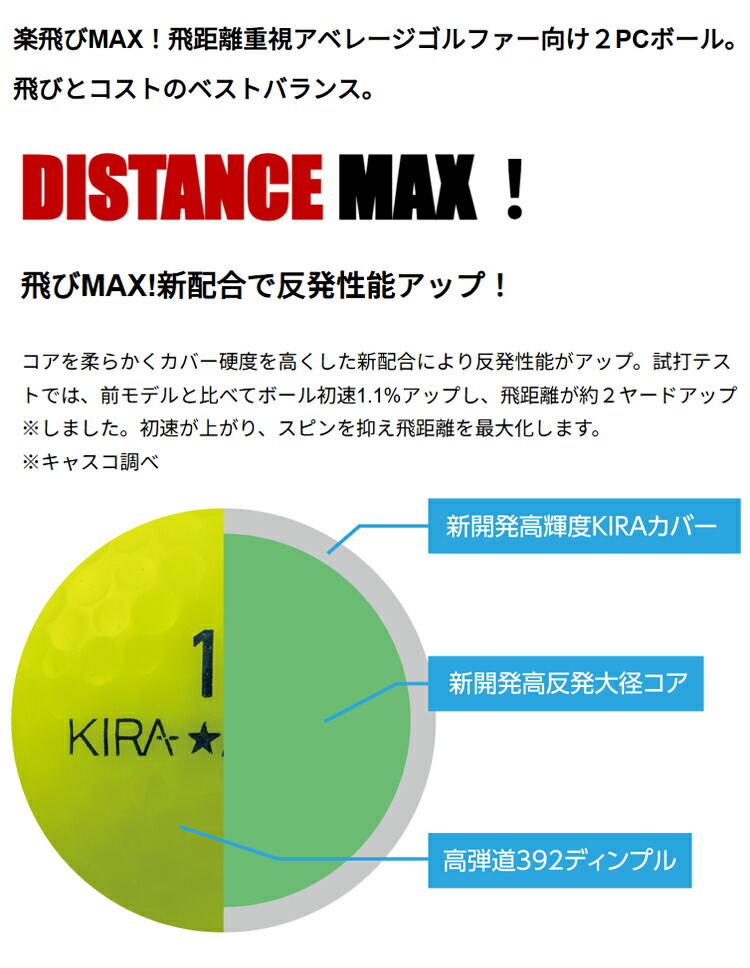 まとめ買い キャスコ キラ マックス 2ピース ディスタンス ゴルフボール 2ダースセット24個入り KASCO KIRA MAX 2026年モデル日本正規品