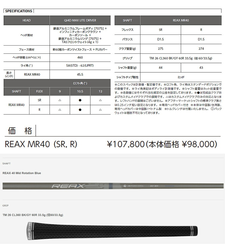 | ラインアップ | REAX 40 Mid R Blue | SR | × | 〇 | × |