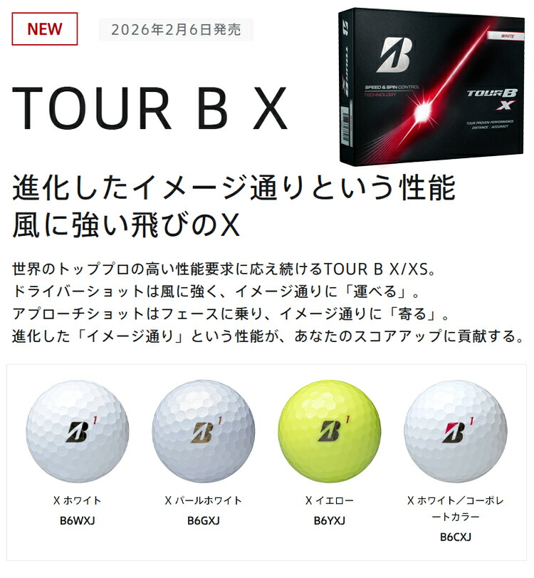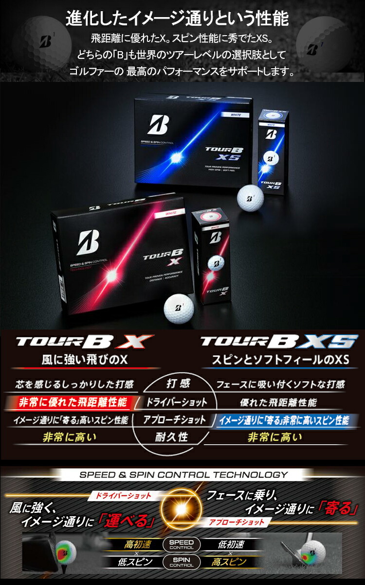 ■キーワード:ゴルフボール TOUR B X TOUR B XS 飛距離 スピン ブリヂストン 高初速 低スピン ディープ感 打感 コントロール トッププロ スコアアップ 日本製 風に強い