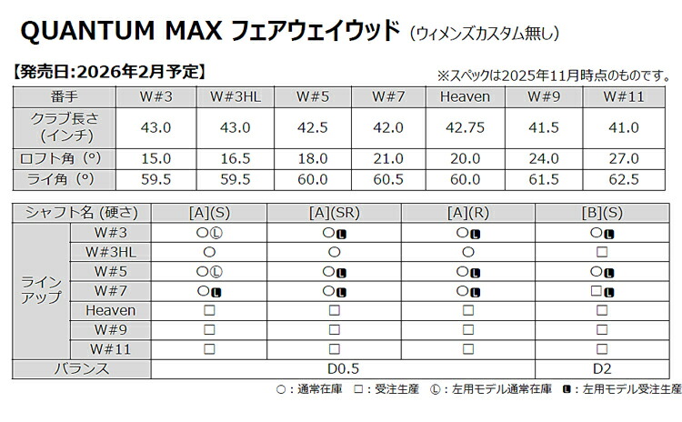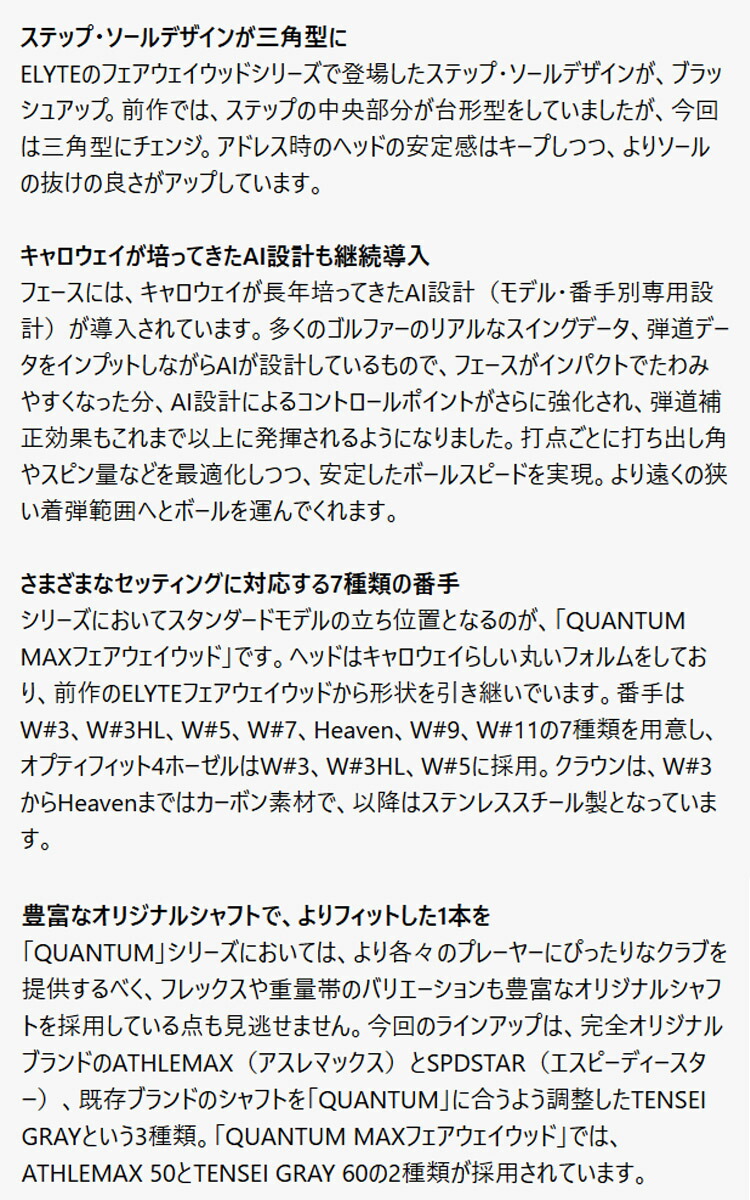 キャロウェイゴルフ株式会社は、 「QUANTUMフェアウェイウッド シリーズ」を2025年2月6日より、全国のキャロウェイゴルフ取扱店にて発売いたします。